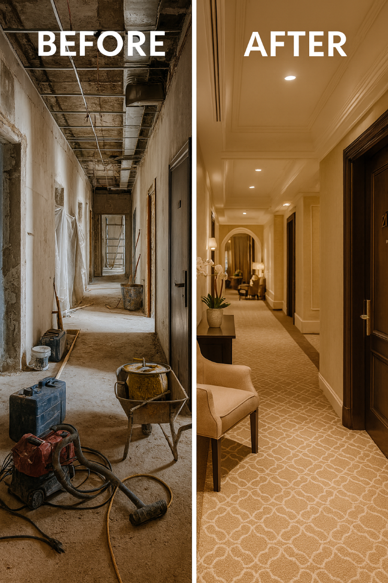 We help hotels and large properties navigate renovation with clarity and structure. From planning through reopening, we advise on housekeeping systems, staffing, and operational setup to ensure a seamless property transition.